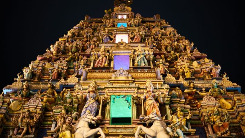 Dedicated to Lord Shiva, this 700-year-old Shiv temple in Tamil Nadu was built with an exemplary conglomeration of Chinese and Tamil architecture to attract Chinese merchants who were interested in trade. Chinese builders follow a design pattern of feng shui that involves the use of bilateral symmetry along with enclosed open spaces. Additionally, in Tamilian architecture (also known as Dravidian architecture), the temples and monuments were built with complex engineering and various sculptures with rich inscriptions on the walls, intended to impart knowledge. Although now in ruins because of weathering and coastal erosion, tourists can still witness the rich South Indian architecture on the temple dome and entrance door.