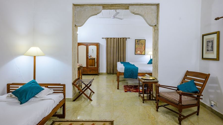The suite is a regal accommodation in Gwalior that lies in close proximity to the Dhanur Mahal - Naubagh / Garden View which can be booked together for family and friends.
